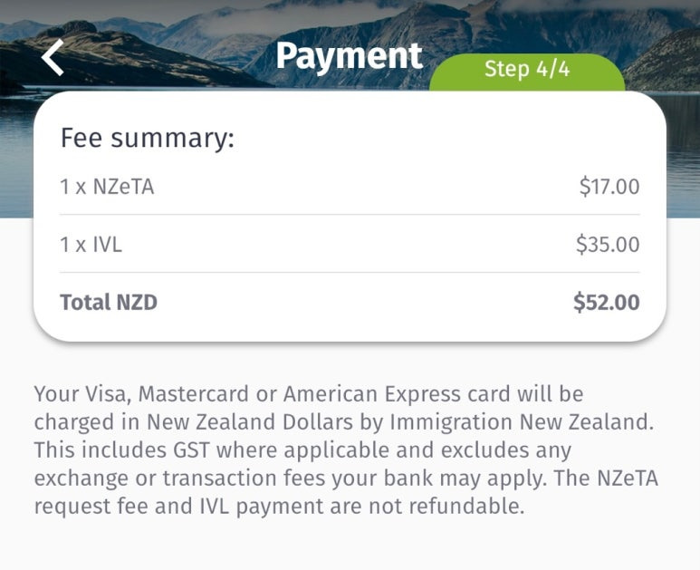 비자 발급비용 17달러(뉴질랜드달러, NZD)