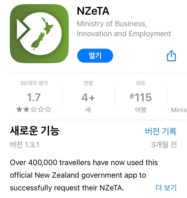 뉴질랜드 전자비자는 어플 / 온라인 신청 둘다 가능하다고 한다. 나는 더 간단한 앱을 이용하기로!